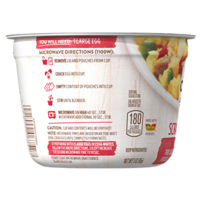 Just Crack an Egg Ultimate Scramble Breakfast Bowl Kit with Pork Sausage Mild Cheddar Cheese Potatoes Onions and Green and Red Peppers 3 oz Cup