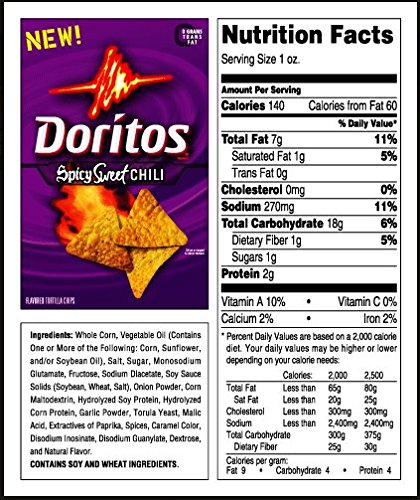 Doritos food labels