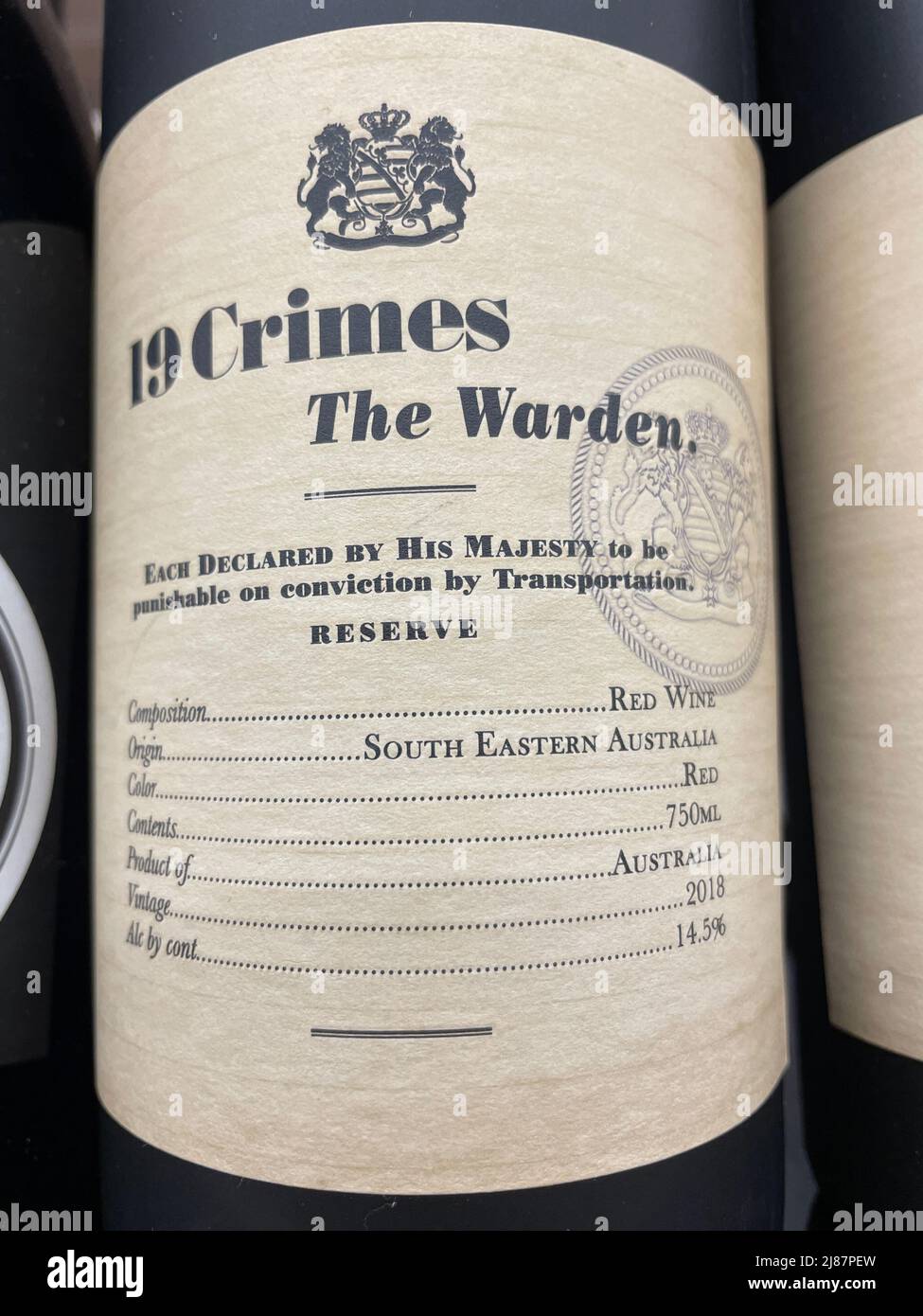 The 19 Crimes Nineteen crimes turned convicts into colonists. Upon conviction British rogues guilty of at least one of the 19 crimes were sentenced to live in Australia, rather than death. This punishment by "transportation" began in 1787 and many of the lawless died at sea. For the rough-hewn prisoners who made it to shore, a new world awaited. 19 Crimes: A Review of the Brand and Its Fascinating Labels The Warden 19 Crimes' most expensive and prestigious wine is another red blend, this time with only Shiraz and Grenache grapes. It's a Rhone-style blend that produces a lush, dark red wine that's surprisingly sophisticated. Red plum, black cherry, and chocolate fill the palette, with a peppery vanilla finish and plush tannins.