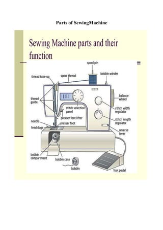 PDF Parts of a Sewing Machine - University of California, Berkeley The parts of a sewing machine are easy to identify. I can get out my pointer if you'd like. Models and makes of sewing machines differ in layout and features, but the basic parts are similar. Your machine's manual should show a detailed diagram of your specific model. If you don't have a manual, check the manufacturer's