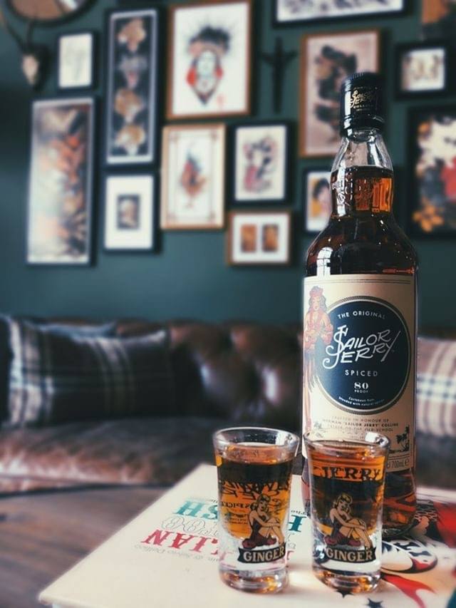 Sailor jerry rum tattoo label