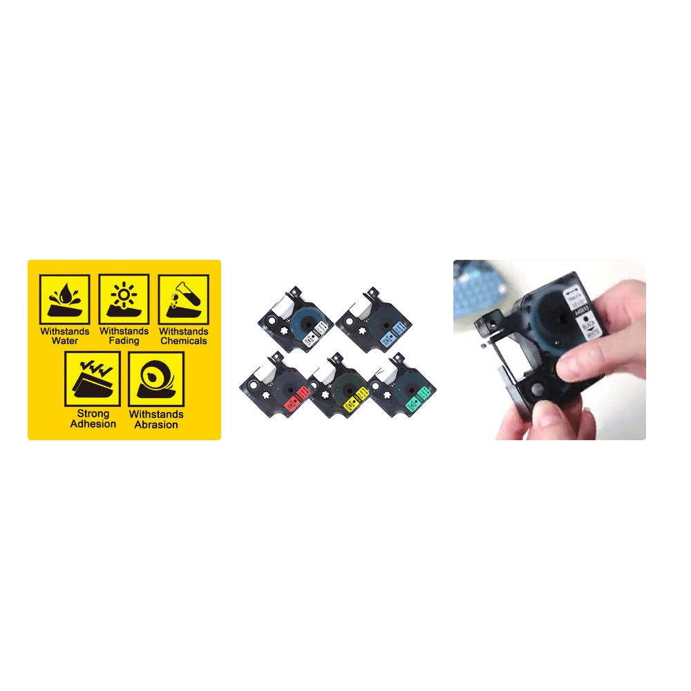 Visland Waterproof Non-fading 3 in 1 Compatible Tape Replacement Refill, Black on White/Yellow ,9mm/12mm , Labeling Tape for Dymo Label Manager PnP ...