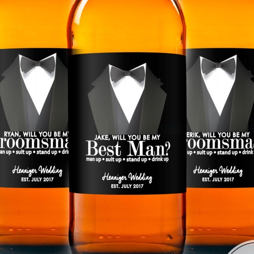 Amazon.com: 6 Will You Be My Groomsman + 1 BONUS Best Man Proposal Wine ... This item: 6 Will You Be My Groomsman + 1 BONUS Best Man Proposal Wine, Beer, Whiskey, Liquor Bottle Labels or Stickers Set, Wedding Engagement Supplies For Groomsmen Party Favors Best Way To Ask Your Grooms Men $10.99 12 Gauge Shot Glasses Set of 4 - Groomsmen Tuxedo $14.99 ($3.75/Count)