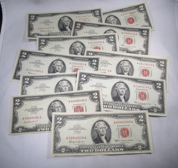 1963 red 2 dollar bill. Why the 1953 $2 bill has a red seal - CoinSite Why the 1953 $2 bill has a red seal. Jon D. writes: What does it mean if my 1953A 2 dollar bill has red writing on it and a red seal and below Jefferson it says The United States of America will pay to the bearer on demand Two Dollars. On the back it has Monticello instead of the signing of the declaration of independence. How much is a 1963 two dollar bill with red ink worth? - Quora You can buy a circulated 1963 red seal two dollar bill any day of the week for around $3. A star note from 1963 will cost you closer to $5 if it is in average condition. It is still possible to buy 100 note packs of 1963 red seal two dollar bills. A pack will cost around $800. 1963 $2 star packs are less available and should sell for around $1,500. Value of 1963 Two Dollar Legal Tenders - Rare Money - Old Money Prices Text on Note: 2 - Two Dollars - United States Note - This Note is Legal Tender for all debts, public and private - Washington, D.C. - Two - Jefferson - The United States of America - Two Dollars - Red Seal - 1963 Other Red Seal Bills $2 Legal Tenders All Red Seal Legal Tenders Printed Other U.S. Banknotes U.S. Paper Money World Paper Money › red-seal-two-dollar-billFacts and History of the Red Seal Two-Dollar Bill In 1963, the Treasury Department added the motto "IN GOD WE TRUST" to the back of the note and placed it over the engraving of Monticello. The treasury seal found on the note is bright red. In 1928 it was located on the left side of the note and moved to the right side of the note beginning with Series of 1953.