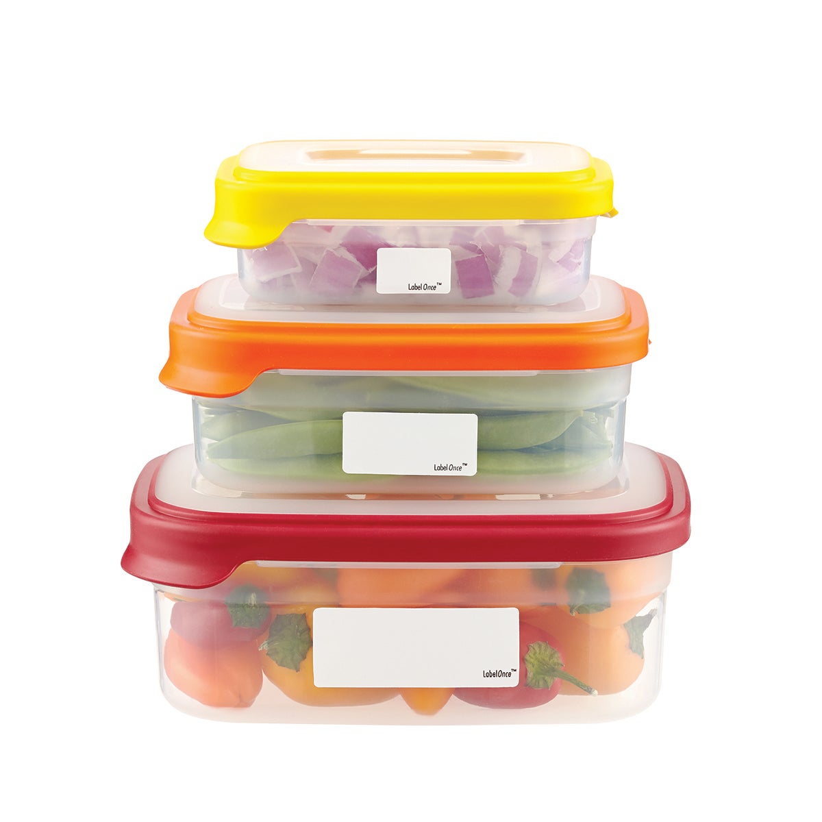 Jokari Label Once 47826 - Erasable Multi-Use Labels Starter Kit with 70 ... You'll love labeling food with the Erasable Food Labels. They are microwave, freezer and dishwasher safe and allow permanent marker to be erased as often as needed. Set of 70 coated adhesive labels. Includes three different sizes; 21 labels measure 1 by 2.5-Inch, 21 labels measure 0.75 by 1.75-Inch and 28 labels measure .5 by .88-Inch. Erasable Food Labels - Jokari Erasable Food Labels are designed to hold up under extreme conditions without deteriorating! It's as if the label was built in to the container. Works on smooth plastics, glass, and stainless steel. Not suitable for use on stove top or in conventional ovens. 70 assorted size laminated erasable labels are microwave, freezer, & dishwasher safe!