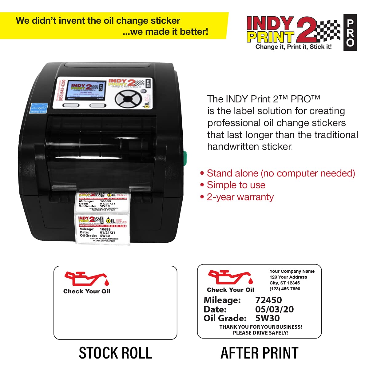 Oil change label maker. Oil Change Sticker Printer: Godex RT200i - OILabel.com Jan 24, 2023 · Combine that with our free tech support (M-F 8am-5pm CST at 888-307-5352) and you will see why we're the preferred supplier of oil change printers, stickers, labels, ribbons, and other supplies. The small footprint RT200i is a perfect printer solution for your shop environment. Dealership branded reminder stickers work great with this printer ... Amazon.com: Oil Change Sticker Printer Light Adhesive Thermal Printer Oil Change Labels Quantity 500 (1 Roll) (D21) 32 $3200 FREE delivery Only 1 left in stock - order soon. More Buying Choices $30.50 (4 new offers) 1000 (Click for Qty & Color Options) Premium Two Color Synthetic Matt White Oil Change Reminder Stickers with Easy Peel Off. Stand Alone Oil Change Sticker/Label Printer. Complete ... Dec 6, 2019 · System will be Programmed Prior to Shipping Allowing Rapid Set-Up and full live support as needed Includes 1000 Premium Synthetic 2 Color Custom Oil Change Stickers ($119 Value) & Free Ribbon Included With Every Custom Label Purchase Three Year Manufacturers Warranty on Printer and Lifetime Product Support Additional Details Small Business