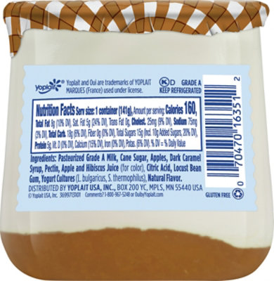 Strawberry French Style Yogurt - Flavors - Oui by Yoplait Oui yogurt is best experienced without stirring to get just the right amount of fruit from the ... French style yogurt by OUI nutrition facts and analysis. The latter is 15 g sugar and 0 g of dietary fiber, the rest is complex carbohydrate. French style yogurt by OUI contains 3 g of saturated fat and 15 mg of cholesterol per serving. 99 g of French style yogurt by OUI contains 0.0 mg vitamin C as well as 0.00 mg of iron, 99.99 mg of calcium. French style yogurt by OUI belong to 'Yogurt' food category.