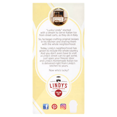 Lindy's Homemade - Lindy's Italian Ice : Lindy's Italian Ice Woohoooo. A cup of Lindy's Homemade Italian Ice is so authentic, you'll feel like you're at an amusement park - only without the long lines and the dizziness after the 4th ride on the quadloopilator.