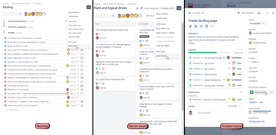 Excel Export Samples - Better Excel Exporter for Jira | Midori Better Excel Exporter fully integrates with Jira Software, the Jira edition custom-tailored for software engineering teams. First, Jira Software specific custom fields ( Sprint, Epic, Story Points and Development) are exported to Excel. Better Excel Exporter for Jira | Atlassian Marketplace Full-blown native Excel exports, spreadsheet reports and Business Intelligence for Jira Server, Data Center and Cloud All powerful Excel reporting features Use functions, formulas, charts, pivot tables, pivot charts, Visual Basic and all other Microsoft Excel features to get more insights from your Jira data. Powerful and easy BI! Better Excel Exporter for Jira - Version history Better Excel Exporter for Jira - Version history | Atlassian Marketplace Version history Watch Collapsed Cloud Jira Cloud 2022-01-27 Minor version update Collapsed 8.2.0 Jira Data Center 6.3 - 9.3.0 2022-10-14 Compatibility release for Jira 9.3. Collapsed 8.1.0 Jira Data Center 6.3 - 9.2.0 2022-08-22 Maintenance release. New templates. Solved: Jira Export Custom Fields to Excel - Atlassian Community Better Excel Exporter supports all built-in system fields, all built-in custom fields and the majority of the popular 3rd party custom field types. You can try free if this fits your use case. Reply 2 votes Gezim Shehu [Communardo] Community Leader Mar 09, 2018 I'm confused.